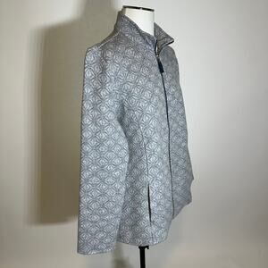 Weekends By Chicos Gray Geometric Jacket Full Zip Soft Womens Size 2 (Large L)