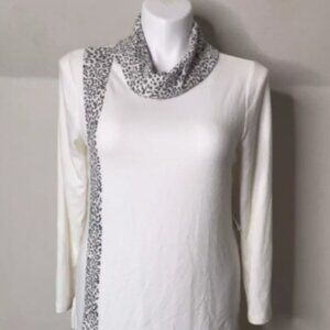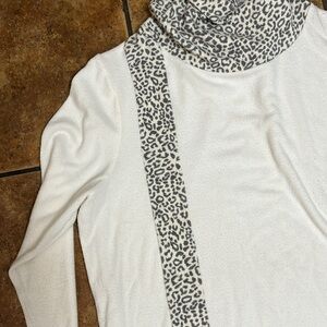 Weekends By Chicos Modern Ecru Leopard Print Long Sleeve Turtle Neck Sweater