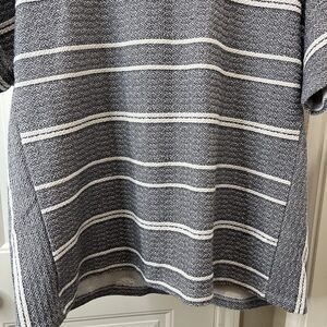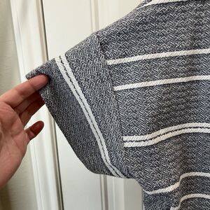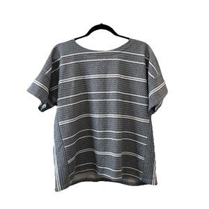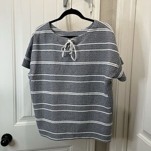 Weekends By Chicos Size 3 Blue White Striped Textured Lace Up Back Beachy XL