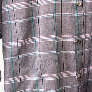 Men's Weekends Only Pink Grey Plaid Button Up Long Sleeve Flat Hem Shirt.