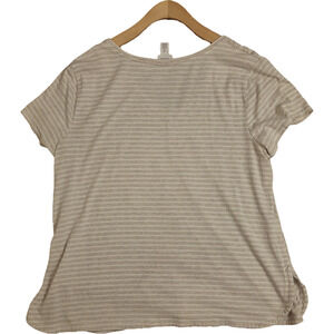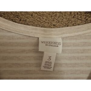 Weekends by Chico's Size 3 Beige Striped V-Neck Short Sleeve Casual Top