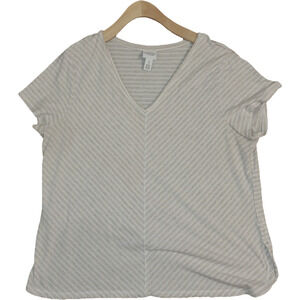 Weekends by Chico's Size 3 Striped V-Neck Short Sleeve top