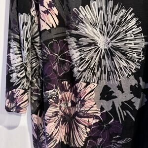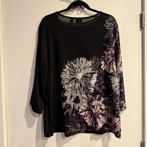 Weekends by Chico's Top Black Crew Neck Floral 3/4 Sleeve Women's Sz 3/L