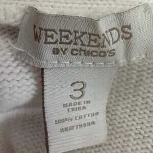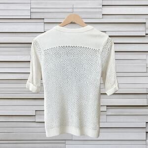 Solid white with fishnet design. Could be worn as a swim coverup or cardigan. Great for travel too! Two front pockets. Excellent smoke free condition.