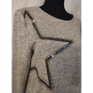 Weekends by Chico's Women's Lightweight Sweater Gray w/Sequin Star Design