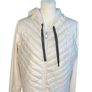 Weekends by Chico's Women's Quilted Puffer Jacket Size 1 Cream Hooded Soft Cozy