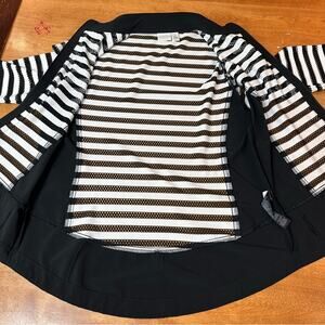 Weekends by Chico’s Women's Sz 1 US 8 M Striped Mesh Jacket Black White Academia