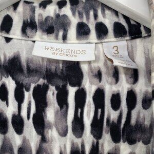 Weekends by Chicos zip front active wear leisure jacket size 3 XL black white cr