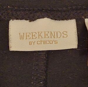 weekends by Chico's black pants very good condition elastic waist 2 front pockets material has some stretch it says size 0 but I think they are bigger