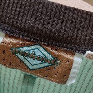 pullover, cotton blend shirt, 1/4 button. some pilling of fabric and a loose thread, see pictures. seam intact. pit to pit 21" length 24"