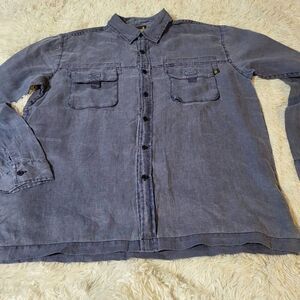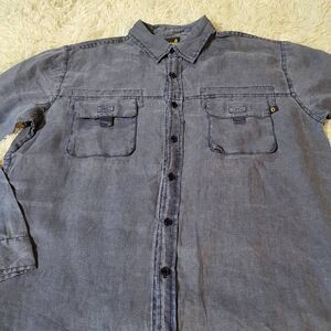 Weekendz off long sleeve cargo indy ink button down linen shirt L