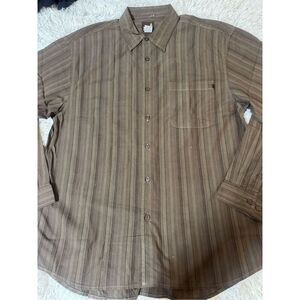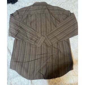 Nwt Brown striped button-up shirt #stripedshirt with chest pocket and button on cuffs 100% cotton
