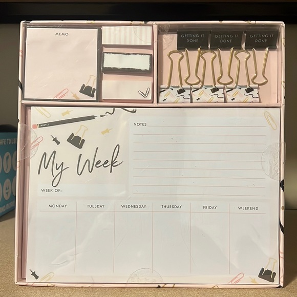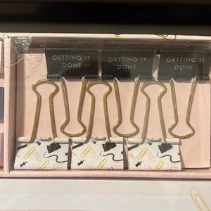 Set includes six binder clips and notepad a 58 sheets a sticky pad a 40 sheets and three sticky notepad and 40 sheets