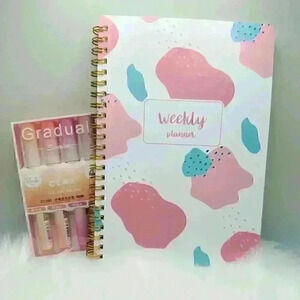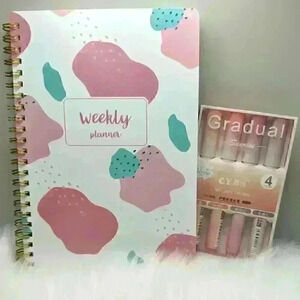 Weekly Planner and Pink Series Highlighter Pen Set Bundle