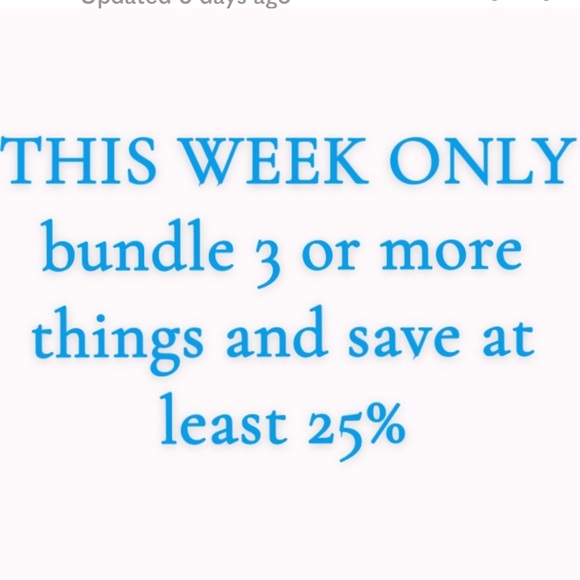 Bundle 3 or more items and save at least 25% this week only. Bundle 2 items and receive 15% off! Offer prices I am pretty open to any prices!