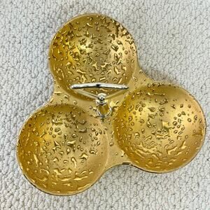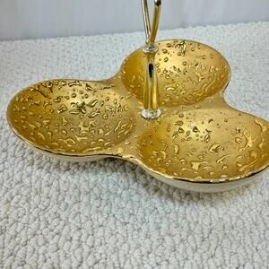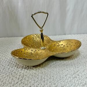 Weeping Bright Gold 3 Compartment Dish W/ Handle Hand Decorated 22K USA VTG