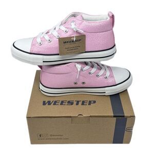 Weestep Kids Princess Pink Glitter High Top Canvas Sneakers Size 1 NEW