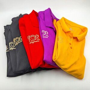 5 short sleeve shirts size M: 2 black, red, purple, tangerine