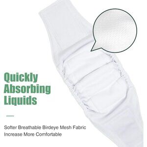 * SOFT & COMFORTABLE DIAPERS - Comfortable material for male dog wraps, the dog wraps male outer shell is leak-free lamination fabric, which have been used for baby cloth diapers; With leak-free outer shell, u never worry the dog get leakage and comfort of the softer, birdeye mesh fabric against pet’s body; Middle layers microfiber provide male dog belly band super absorbent and no need an extra feminie disposable sanitary pads except super heavy flow