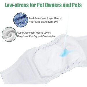 * NO WORRY LEAKAGE - The absorbent pad is sewn into the male dog belly and washable male dog diapers have a leak-free outer layer to keep rugs, carpets, upholstered chairs and sofas dry; The wide hook & loop provide more comfortable and great fit; Washable Male Dog Wrap also called Male dog diapers, Puppy Diaper Wrap Band, Boy Wrap Band, Male Dog Diapers