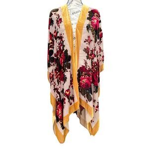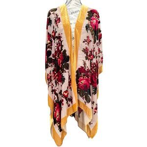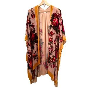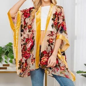 Wehello Golden Velvet Kimono with Floral Print in One Size