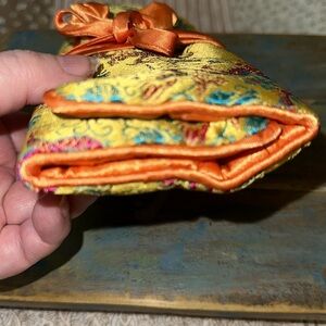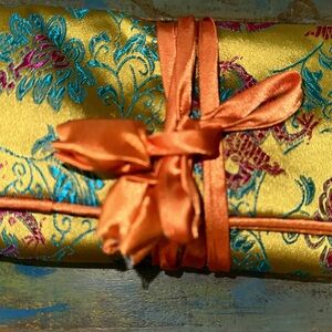 Beautiful rollup jewelry bag with double tassels in great condition. Pockets for jewelry and a roll for rings in good condition.
