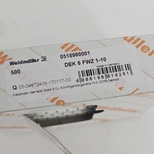 The Weidmuller Marker 0518960001 DEK 6 FWZ 6 mm is a high-quality product made by the renowned brand Weidmuller in Germany. This marker is designed for use in the industrial sector, specifically for marking on 6 mm tape. The product includes 10 sheets with 1-10 tabs, providing ample supply for various marking needs. This marker is a reliable and durable tool for efficiently labeling and marking materials in a professional setting.