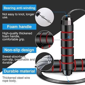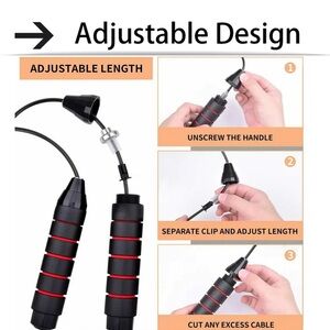 This adjustable jump rope is perfect for all types of workouts, from home use to commercial gyms. With its durable leather, PVC, and rubber materials, it can withstand even the toughest workouts targeting the torso, legs, glutes, shoulders, arms, back, triceps, abdominal, thighs, and full body. The jump rope's black color and adjustable feature make it suitable for both indoor and outdoor use. It's a must-have for anyone looking to improve their fitness, whether it's for gym and training, weight lifting, or yoga.