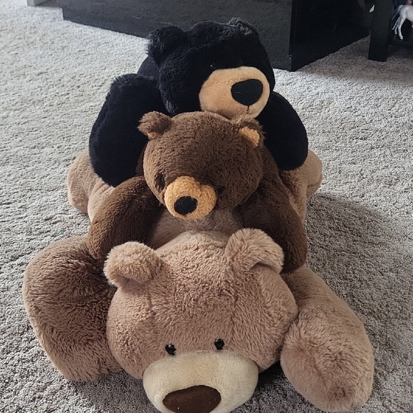 adorable weighted bears! im selling separately or together. The weight supposed to help with anxiety, insomnia, & sensory. For adults or kids!the soft fur really helps me feel calm when u pet & hug them! the black one is brand new without tags. the others are in excellent condition. black weight is 2.5 lbs. , middle brown on is 5 lbs & the big one is around 8 lbs Prices:$25, $45 & $65. $125 for all