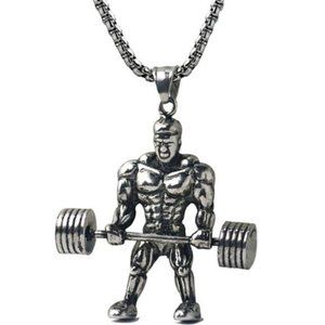 Weightlifter Bodybuilder Necklace Stainless Steel Silver Color 22" New