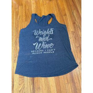 • Graphic Text: "Weights And Wine Because I Can't Punch People"