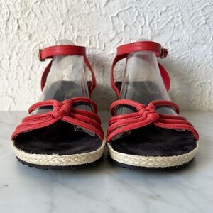 Dr Andrew Weil Technology women's size 9 Serenity sandals are in excellent condition. Red leather strappy upper with ankle strap with adjustable buckle closure. Suede insole and rubber outsole.