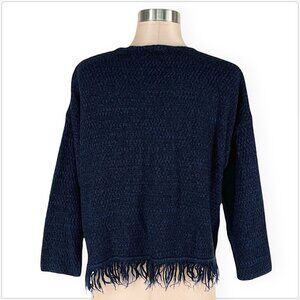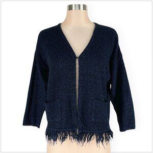 Weill Paris Cardigan Sweater Fringe Hem Mottled Navy Blue Black Knit Size T2