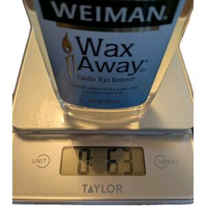 Most of a bottle of Weiman Wax Remover. Use it to remove the last remnants of wax from your candle jars or wax melters. Helps to easily clean up any wax related messes