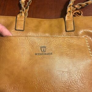 The Weimerbaige Bag Purse is a stylish and practical accessory for women. Made from high-quality leather in a natural tan color, this shoulder bag exudes elegance and sophistication. Perfect for everyday use, the bag is designed to hold all your essentials while on the go. The Weimerbaige brand ensures both quality and fashion-forward design, making it a must-have item in any woman's wardrobe. Has some wear and discoloration shown in photos