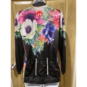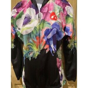 Weimostar Black Floral Long Sleeve Zip Up Cycling Jacket Back Pockets Size L