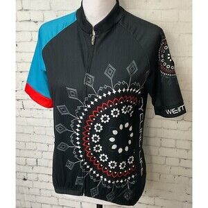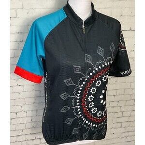 Weimostar Womens Blue Black Floral Cycling Jersey Full Zip Back Pouch Size L R1