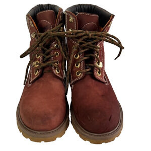 Weinbrenner Boots Women's 6 Rust Red Leather Lace Up Lugged Work Style