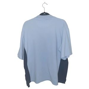 Weir Golf polo with The Presidents Cup embroidered logo. Dual blue tone with collar. Lightweight material, perfect for active wear. Good preowned condition. See photos for details.