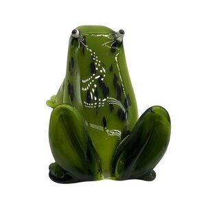 • Hand-blown art glass • Frog/toad figurine • Green, white, and black colors