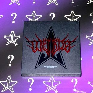 Bold eyeshadow palette by Jeffree Star. Features striking red and black design. Perfect for dramatic looks.