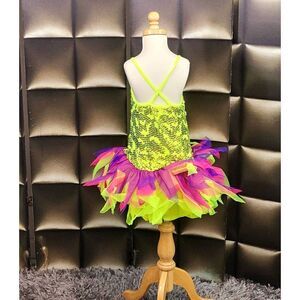 Girls sequin trimmed spandex unitatd with tutu attached over shorts
