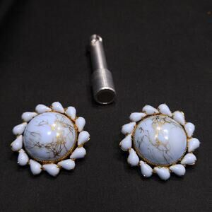 *Condition: Great vintage condition. There was a soft form pad on each earring that disintegrated and is no longer attached. Will see signs of wear under magnification. See photos for details.