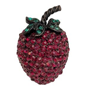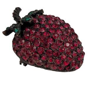 Weiss Red Rhinestone Japanned Strawberry Brooch Pin, Signed M683