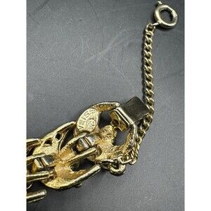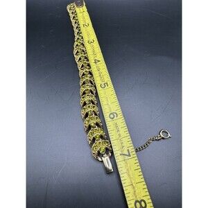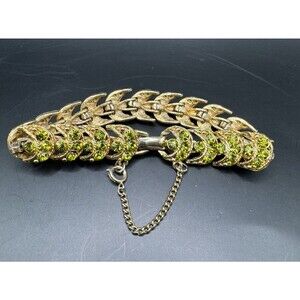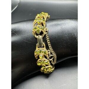 Weiss Rhinestone Link Bracelet Vintage Safety Clasp Green Gold Tone Signed
