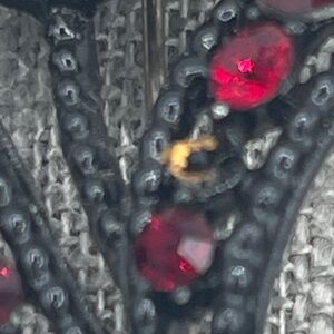 This vintage brooch pin by Weiss features a beautiful flower design with red rhinestones, making it a perfect accessory for occasions like Mother's Day, Christmas, anniversaries, birthdays, or Valentine's Day. The signed piece is crafted from glass, metal, and rhinestones, with a nostalgic retro theme that adds a touch of nature and elegance to any outfit. Measuring 3 inches in length, this original flower brooch is a timeless addition to any jewelry collection for women who appreciate unique and classic accessories.