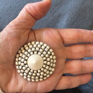 Weiss Signed Round White Milkglass & Acrylic Cluster Brooch Pin. Vintage 1960’s.