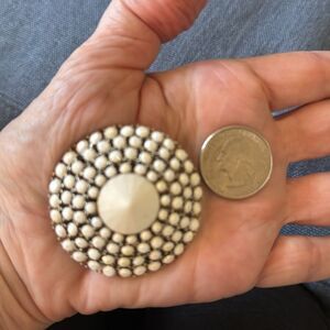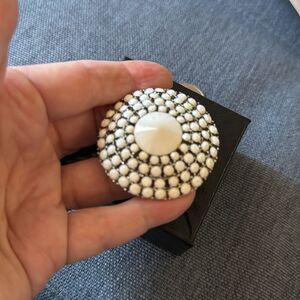 Weiss signed white milk-glass & acrylic circle cluster brooch with c clasp closure. Signed Weiss on the back.