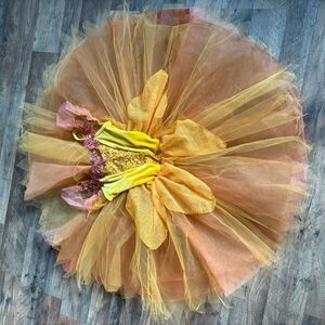 Weissman 13511 Petal Tutu Seasons Fairy Ballet Dance Costume Yellow Velvet Gold Sequin Mauve Floral size MC Medium Child
