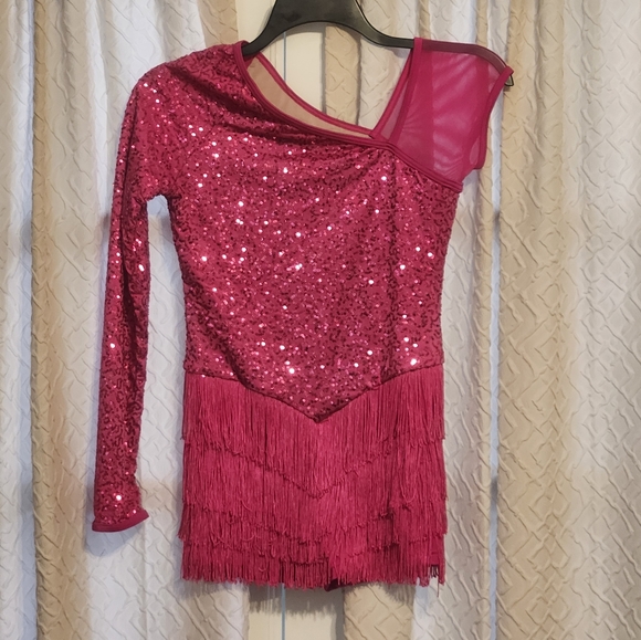 Adult women's Weissman dance costume with sequins and fringe.